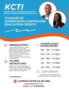 Prerequisites: Graduate degree and licensed or working towards licensure in a mental health profession. We are approved through the MN Board of Behavioral Health to count towards the 45-hour requirement to become a clinical supervisor of Licensed Professional Clinical Counselors (LPCC).